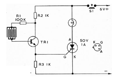 This sensitive circuit was found in old documentation. The SCR can be any of the 106 series and the transistor a BC548.