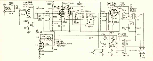 This FM transmitter was described in the Radio Electronics magazine of June 1963. It operates in the FM band with a short range and is suitable for domestic distribution of TV sound.