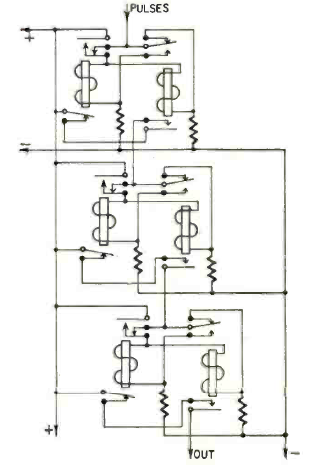 This circuit uses the flip-flops from the previous circuit to implement a 3-digit binary counter. The circuit is from a Radio Electronics from October 1961.