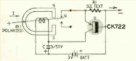 This circuit breaker uses an electromechanical device to open a circuit when current increases. The foot circuit of a Radio Electronics from November 1957.