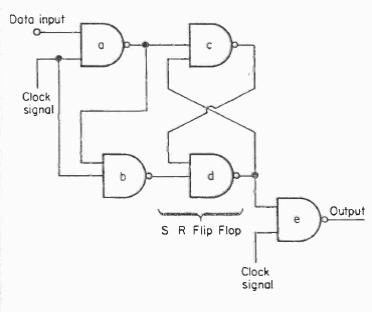 This TTL circuit uses 5 NAND gates of 7400 integrated circuits. It must be powered with 5 V.