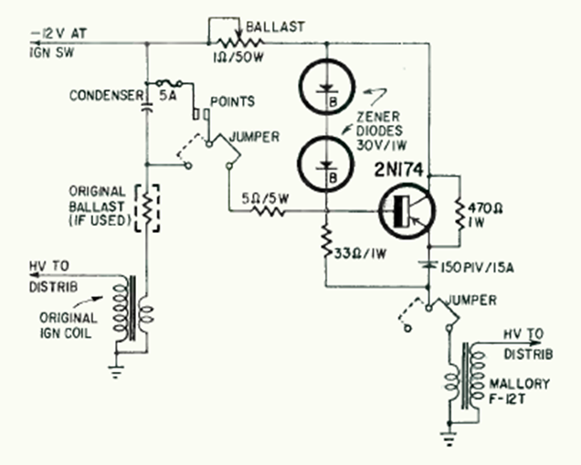 For cars that had the positive pole of the battery in the chassis, Radio Electronics magazine from December 1964 suggests this assisted ignition circuit. The transistor is power. The circuit is for contact breaker cars.