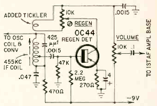This interesting circuit of a one-transistor receiver was found ina march 1961 Radio Electronics magazine. The output signal must be applied to an external amplifier.