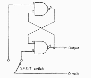 This circuit to produce clock pulses is manually driven. The circuit is TTL and must be powered by 5 V.