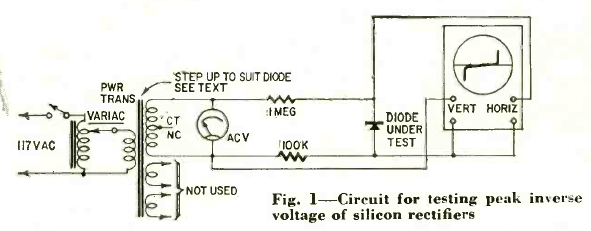 This circuit for testing zener diodes by lifting their curve on an oscilloscope was presented in Radio Electronics magazine in January 1961. The applied voltage must be slightly greater than the zener voltage.