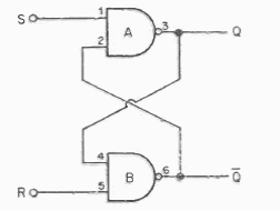 The figure shows how to connect a 7400 to obtain a bistable configuration. The circuit must be powered with 5 V.