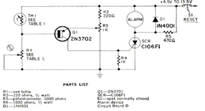 We found this circuit in the September 1971 issue of Radio Electronics magazine. The sensor is an LDR and R1 adjusts the sensitivity. A relay with the appropriate voltage can be used instead of a buzzer.