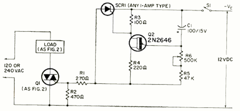 This circuit turns off a load after an interval of 8 to 80 seconds adjusted on the potentiometer. The circuit is from a Radio Electronics June 1970. The time depends on C1 and can be changed.