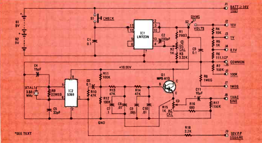Indicated for calibrating digital instruments and circuits, this circuit was found in the June 1982 issue of Radio Electronics magazine. The circuit is based on components that are still available.