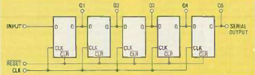 This circuit shows how to use flip-flops in a SIPO circuit with serial input and parallel output.