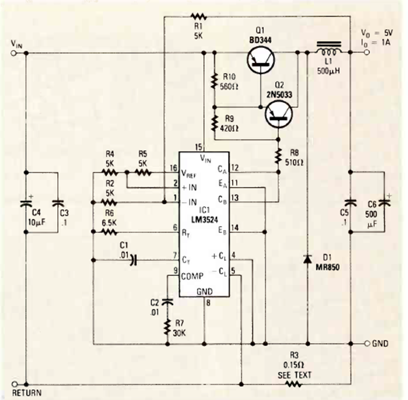 This circuit was obtained from the December 1985 issue of Radio Electronics magazine. The circuit uses components from the time, such as the power transistor, which must be equipped with a heat sink.