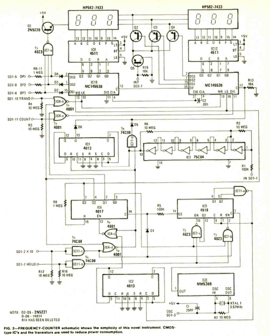We found this circuit in the October 1978 issue of Radio Electronics magazine. The magazine article describes its assembly. The circuit is a 6-digit circuit using components from the time.