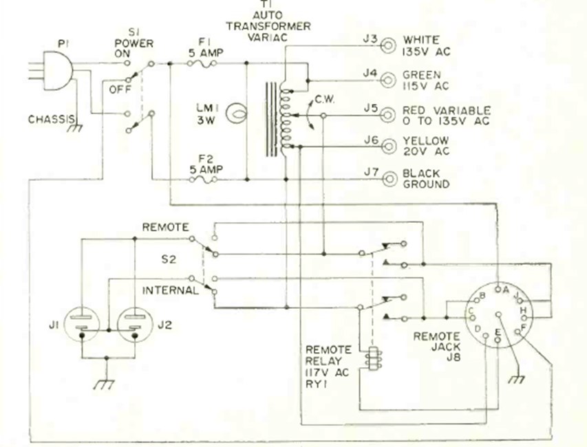 This is a very useful autotransformer circuit on the bench. We found it in the September 1970 Radio Elecronics magazine. The transformer must be according to what you want to feed at the output.