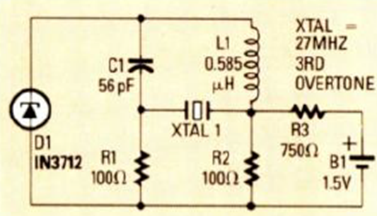 This tunnel diode oscillator was found in July 1986, Radio Electronics magazine. Note the low supply voltage.