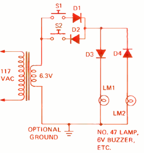 This trick that uses diodes and that we have already explored in articles on our website was found in the Radio Electronics magazine of May 1972. The diodes are in accordance with the current of the lamps. The lamps receive a half-wave rectified current.