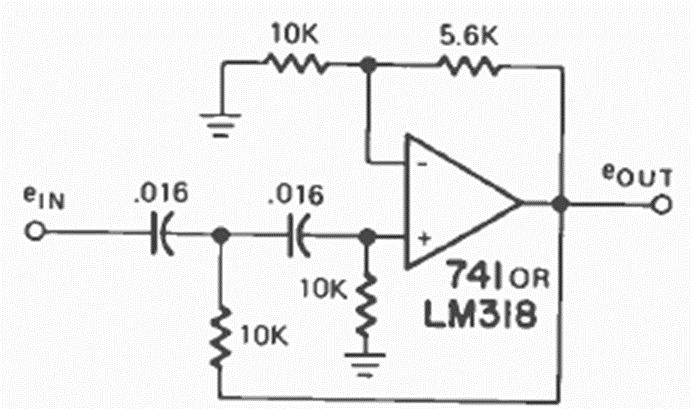 Using the 741 this basic circuit was found in the November 1973 Radio Electronics magazine. The power supply must be symmetrical. The components can be recalculated for other frequencies.