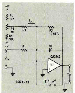 In the figure we have an integrated circuit with the CA3140. The values of R1 and C1 depend on the signal that must be integrated. The power supply must be symmetrical.