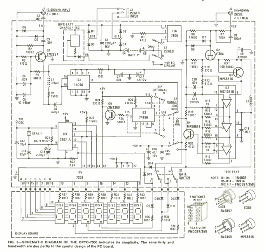 We found this circuit in the January 1979 issue of Radio Electronics magazine. Components are still common today, with the 7106 display driver standing out.