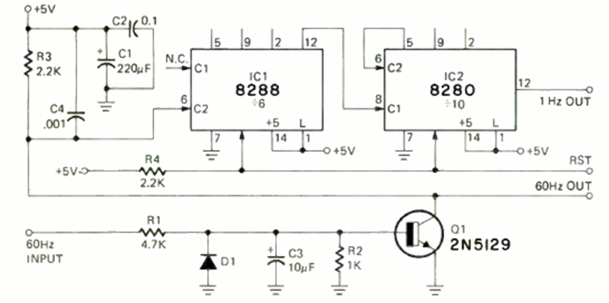 We found this time base circuit in a timer project from the August 1972 Radio Electronics magazine. The circuit takes advantage of the 60 Hz signal from the power grid.