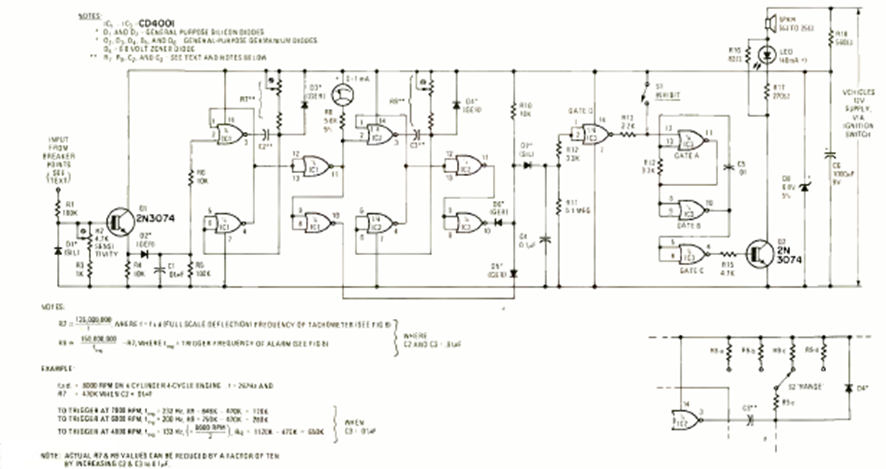 We found this circuit in a Radio Electronics from October 1976. The components are still common, but the circuit applies to older car models with contact breaker ignition.