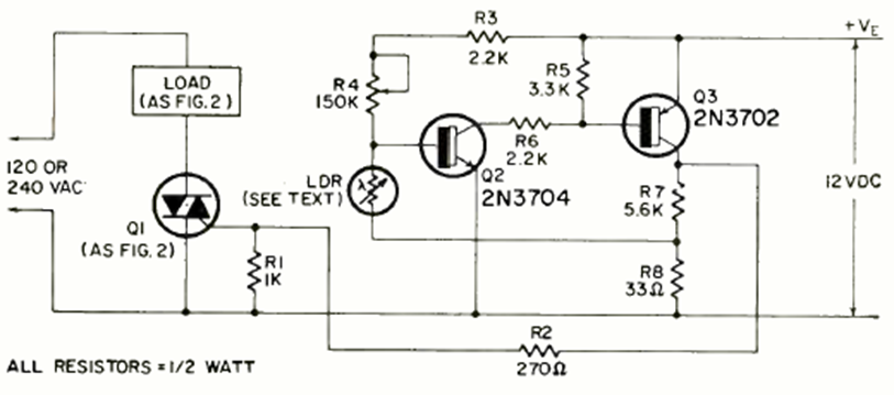 This remote control or light-beam operated switch was found in the June 1970 Radio Electronics magazine. Sensitivity is set at R4.