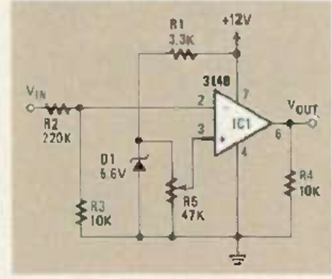 The figure shows how to use an operational circuit as a voltage divider. The circuit is from a Radio Electronics magazine from June 1986. The reference voltage is given by a zener diode.