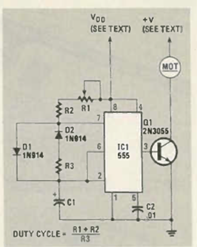 Another of the many similar configurations we have in this section. This one is from a Radio Electronics magazine from June 1985. The transistor is according to the power of the controlled motor.