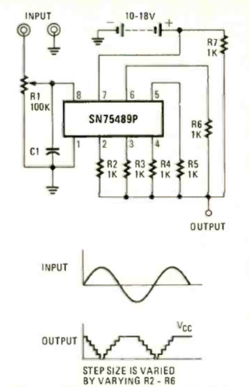 This circuit was found in the June 1978 issue of Radio Electronics magazine. The circuit is powered by voltages from 10 to 18 V. The integrated circuit is from Texas Instruments.