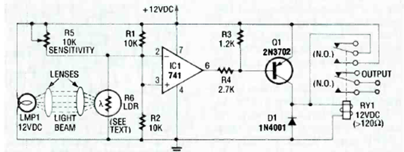 This circuit detects smoke by changing the light falling on the sensor. The circuit was found in the Electronics Experimenter's Handbook of 1991. Optical devices must be used.