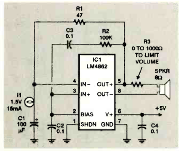 Using a small incandescent bulb as a regulator, this Wien bridge oscillator produces a sinusoidal signal. The circuit is from Electronics Now magazine, November 1999.