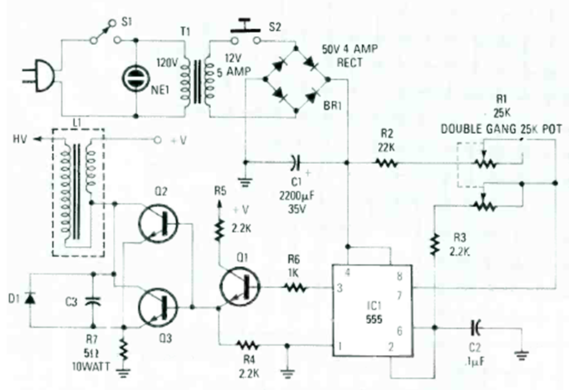 This very high voltage generator for photographing the aura was found in the special edition of Radio Electronics Eerimenter magazine from 1990. The circuit uses a car ignition coil.