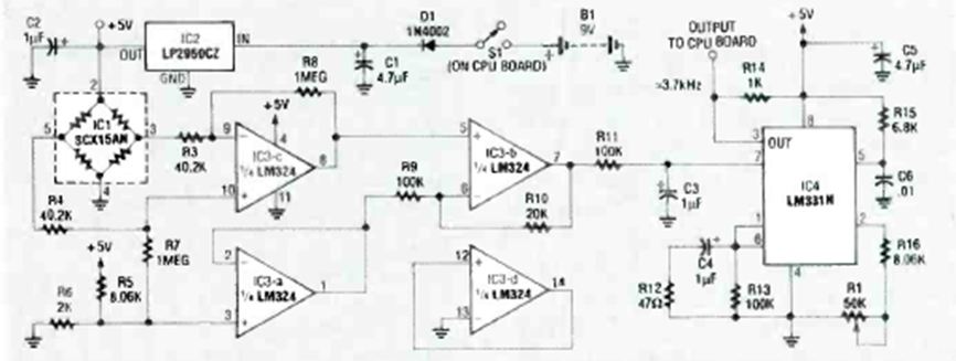 The analog height sensor conversion circuit of the above circuit is given below. It is also in the 1992 Electronics Experimenter magazine article.