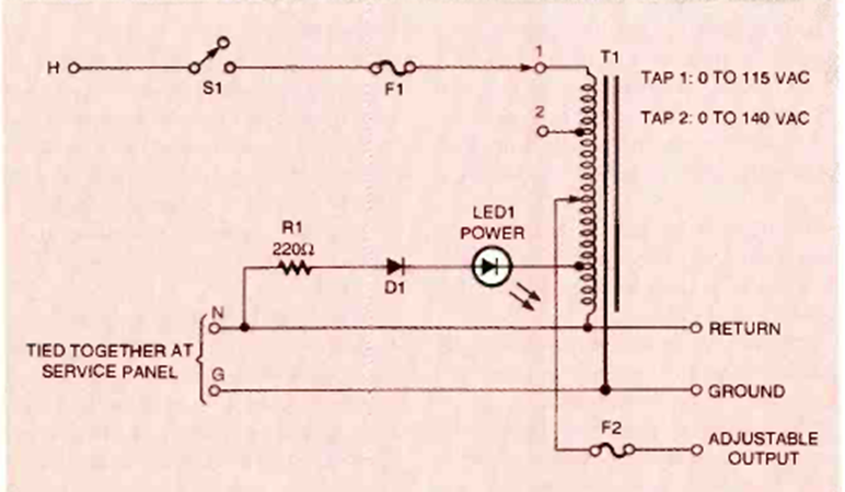 The figure shows a typical circuit of a variac with a special transformer with sliding adjustment of the winding turns. The circuit is from an Electronics Now magazine from December 1997.
