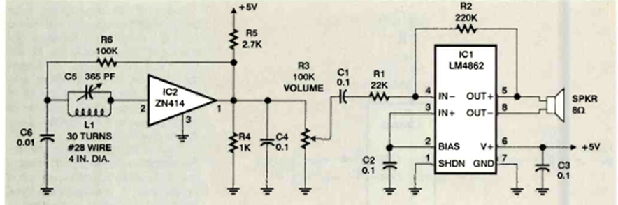 This medium wave receiver was featured in the November 1999 issue of Electronics Now magazine. It is powered by just two small batteries.
