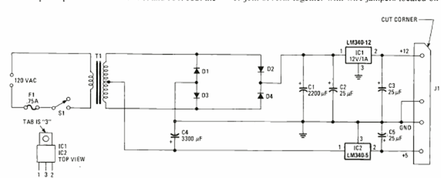 This power supply for those who want to feed and recover 5 ¼ floppy disks was found in the Electronics Experimenter magazine special edition of 1983.