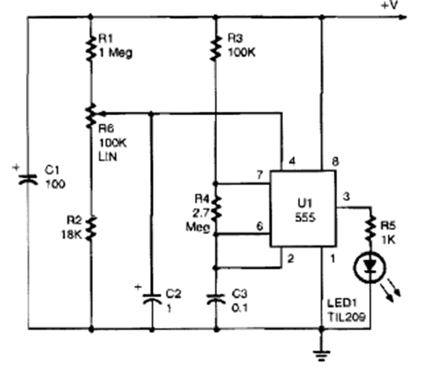 This circuit was found in a Popular Electronics from the 90s. The circuit with the 555 monitors the output voltage of a power supply, adjusted by a potentiometer.