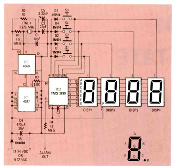 As a reference for restorers, this is the circuit of a digital clock with the TSM201 module. The circuit was published in the Radio Electronics magazine of November 1987.