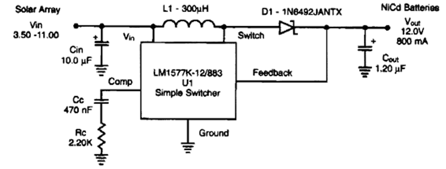 This battery circuit provides a charging current of 500 mA depending on the solar panel. The switching circuit is from a National Semiconductor documentation from the 90s.