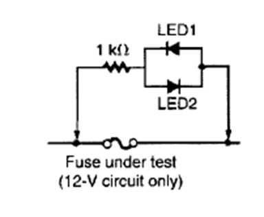 We found this simple car fuse monitor circuit in a William Sheets. The LED lights up when the fuse blows.