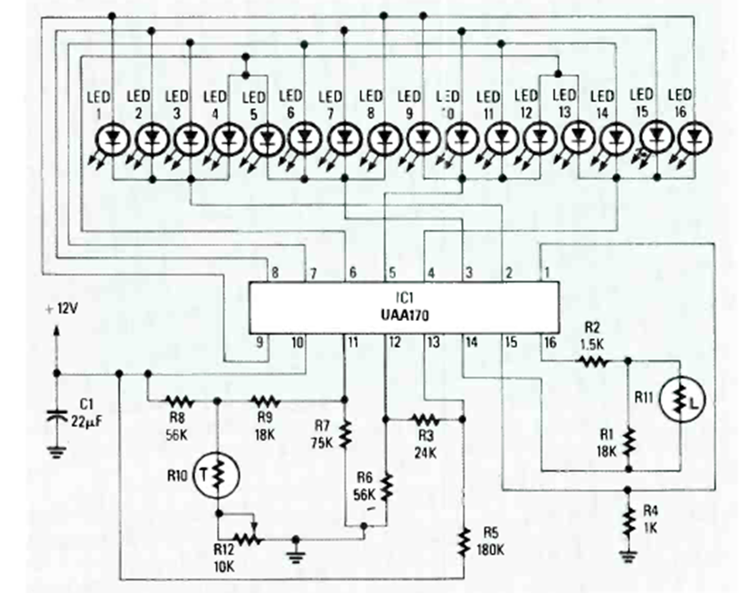 Other versions exist on this site from various publications. This one is from the Radio Electronics Experimenter from 1990. The bargraph circuit uses the UAA170.