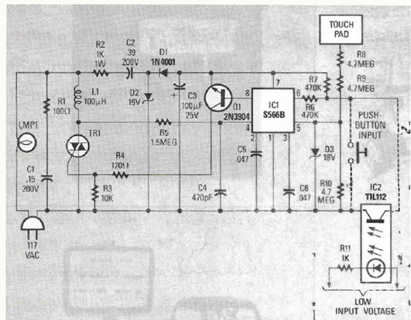 This circuit is based on a Siemens S566B integrated circuit. The circuit is from a Radio Electronics Experimenter and also has a digital control input.