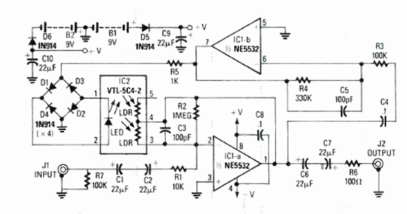 We found this circuit in the Radio Electronics Handbook magazine special edition of 1992. The circuit uses an optocoupler as an electronic potentiometer.