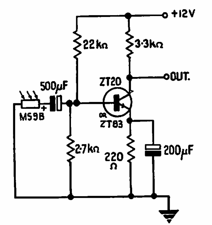 This circuit was originally intended for reading movie soundtracks. The circuit is from 1967 and was found in an English publication. The sensor is semiconductor type.