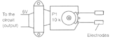 The other transducer is a transformer that generates high voltage from the audio signals in the output of the amplifier. Applied to electrodes, the high-voltage signal can he sensed as a light shock in the finger or other places. An amplitude adjuster is also added to control the level of the stimulus, according to the place where the electrodes are used.