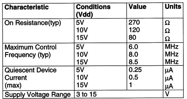 Description: This package contains four independent analog/digital bilateral switches. The switches may be used for the multiplexing of signals. This circuit is equivalent to the 4016 but with lower resistance in the ON state.