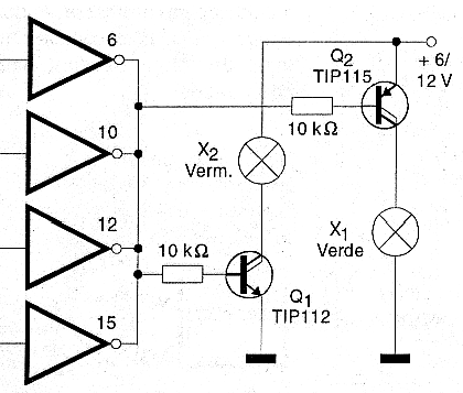 We describe a simple timer or timer with a common incandescent lamp that has an active CMOS integrated circuit and a Darlington transistor with easy to obtain power. With the indicated transistor, lamps up to more than 1 ampere of driving current can be controlled in both 6 and 12 volts.