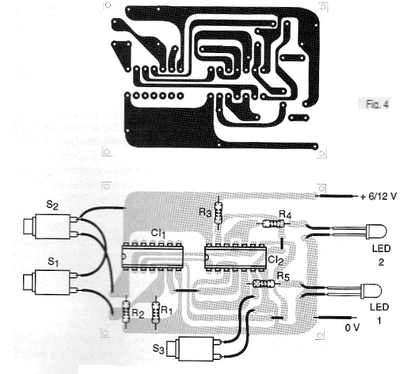 In the original circuit, we will use indicator LEDs, but in its place power steps with relays, SCRs, Power FETs and other components can be used to control devices ranging from automatism to alarm systems.