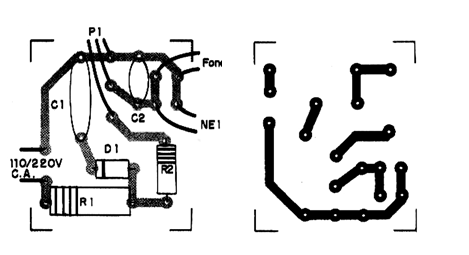 The power source diode is 1 N4007 or 1 N4004 and the capacitors must be made of polyester metallized for 600V or close to that. For the 110V network, the use of capacitors for 400V is allowed. The resistors are not critical, they can be 10% or 20% with 1/4 or 1/8W of dissipation.