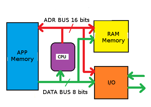 What is left remains the same, that is, it has a CPU (Central Processing Unit) program memory, RAM and input and output ports. The way to look for instructions in the program memory and to execute them continues being the same, although the ARM microcontroller, in the hardware level, the search and execution has been optimized.