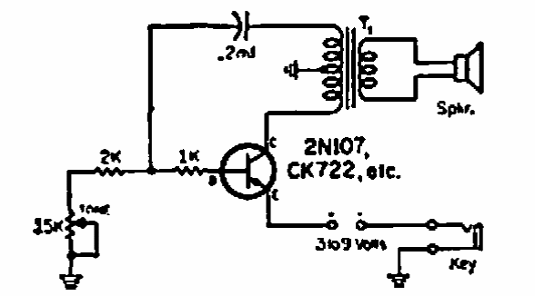 This small Hartley oscillator uses an output transformer for transistors. The frequency is adjusted on the potentiometer. We found it in a 1966 circuit manual.